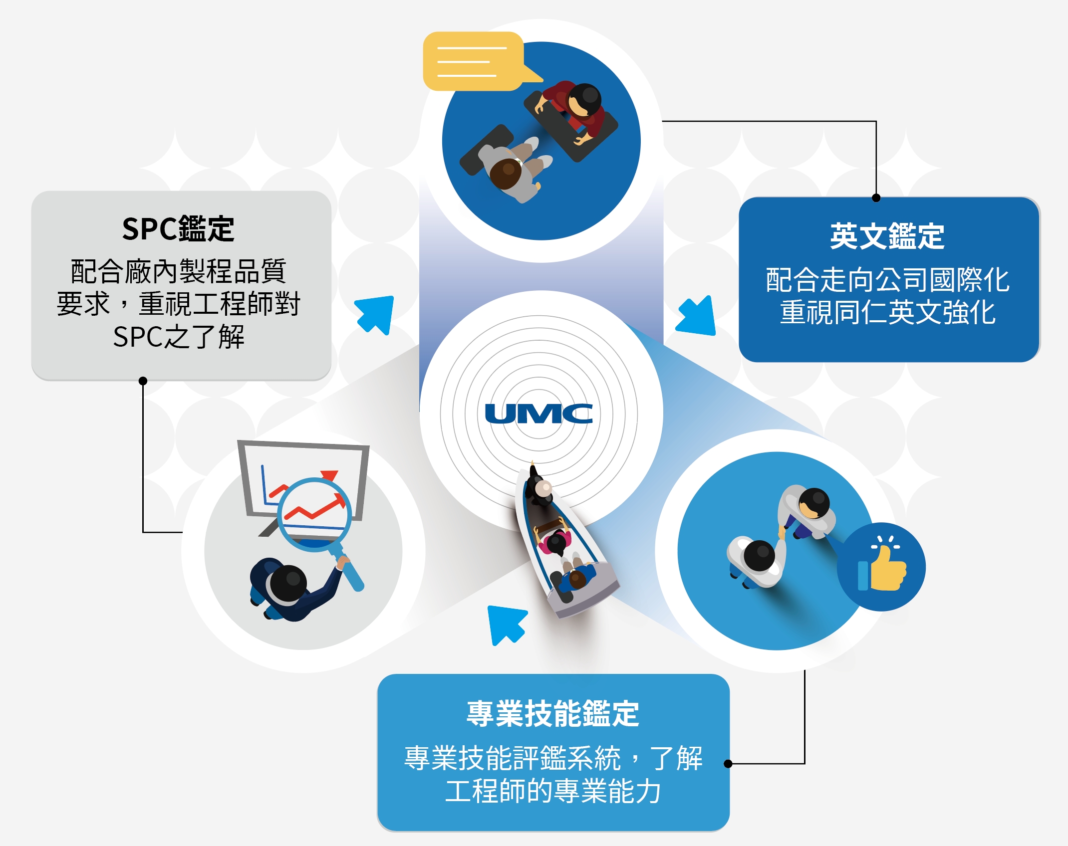 在聯電,教育訓練並不僅限於課堂講授訓練或課程推展,而是透過公司資源的整合與運用,提供員工一個全方位的學習環境。