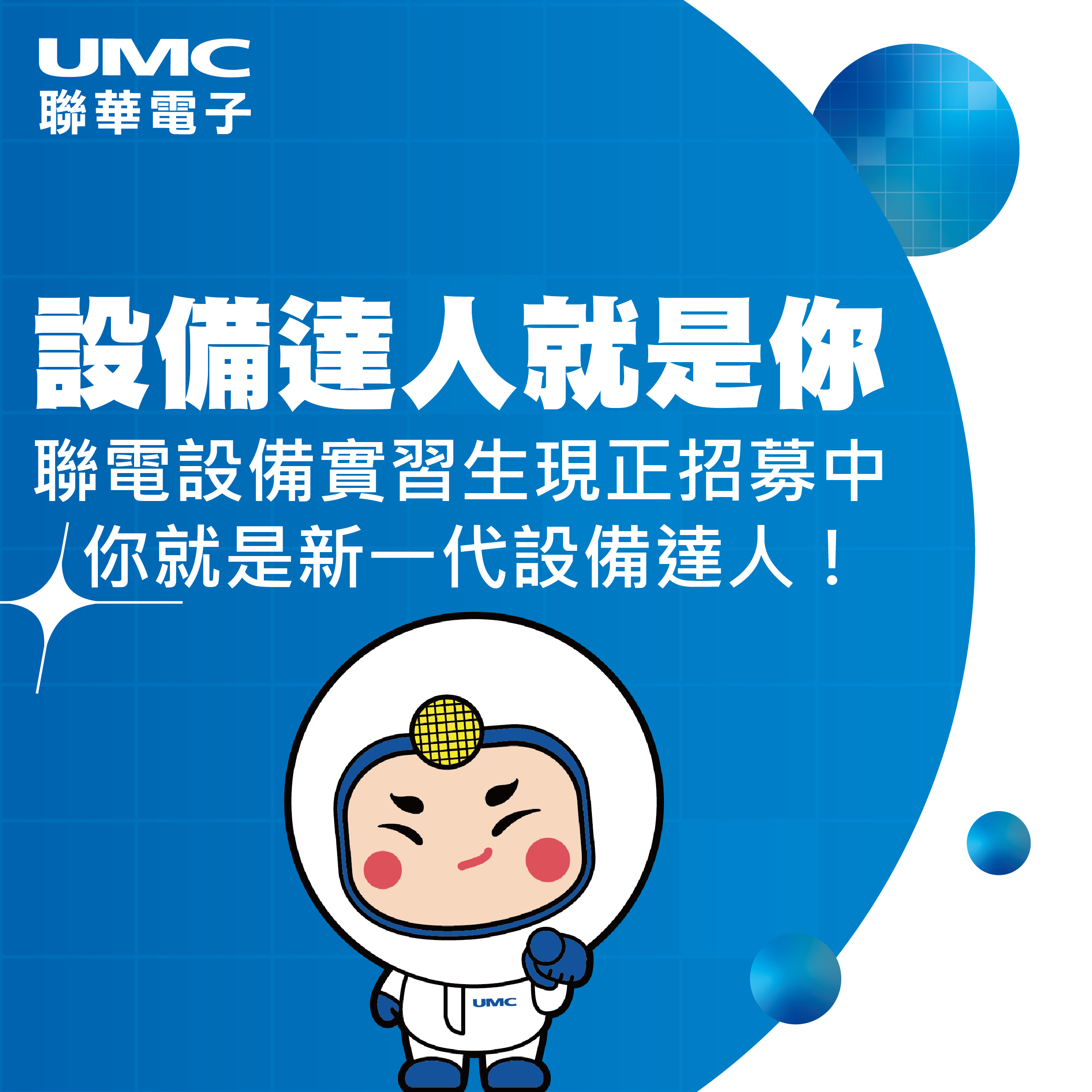 3. Go to UMC Official Recruitment Website(careers.umc.com) and send your resume (we give priority to review the application via Recruitment Website), or search “UMC_Hsinchu/Tainan Summer Internship” in 104 job bank.